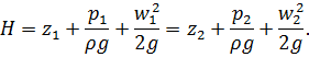 Для горизонтального постоянного сечения трубопровода w1=w2; z1=z2. В этом случае уравнение (1.14) можно переписать так: