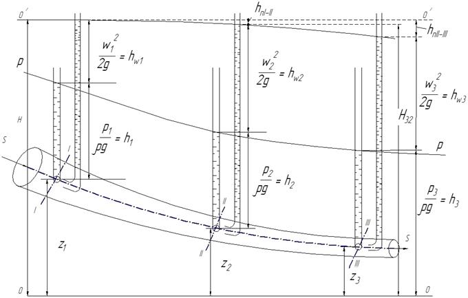 Рис 1.6 - Диаграмма Бернулли для вязкой жидкости