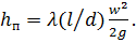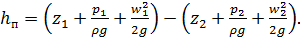 где hп - потерянный напор, который характеризует энергию, израсходованную на преодоление гидравлического сопротивления.