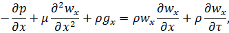 В этом уравнении первый член характеризует изменение давления потока в направлении оси абсцисс, второй член - силу трения, третий - силу тяжести, четвертый и пятый - силы инерции. Учитывая физический смысл членов уравнения, запишем