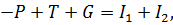 где Р - сила давления; Т - сила трения; G - сила тяжести; I1 и I2 - силы инерции.