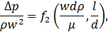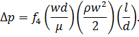 Тогда Δp=f3(wdρ/μ; l/d)(ρw2/2).