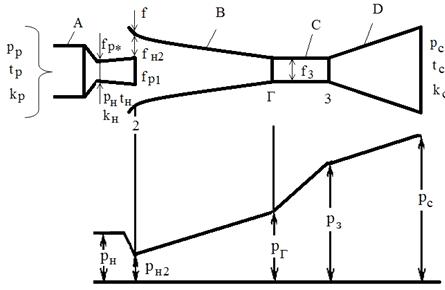 На рис. 2.2 схематически изображен профиль проточной части эжектора этого