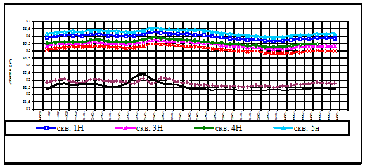 Рис. 10. График временного прослеживания для наблюдательных скважин №№ 2Н, 7Н