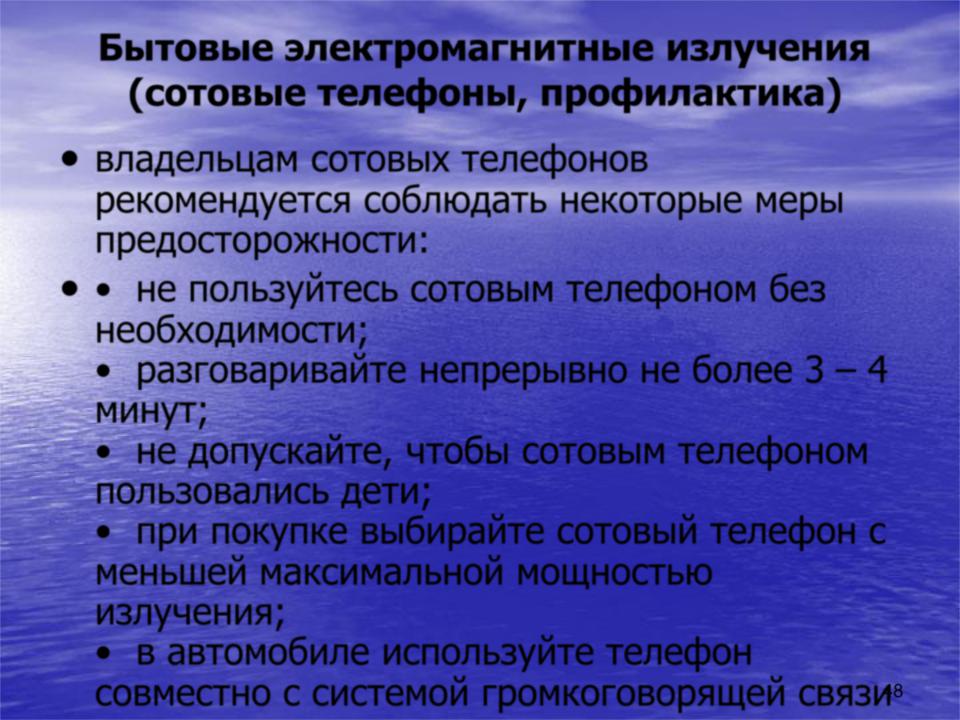 Бытовые электромагнитные излучения (сотовые телефоны, профилактика)