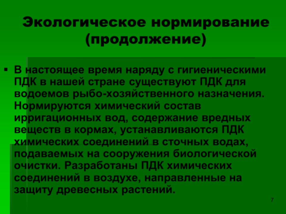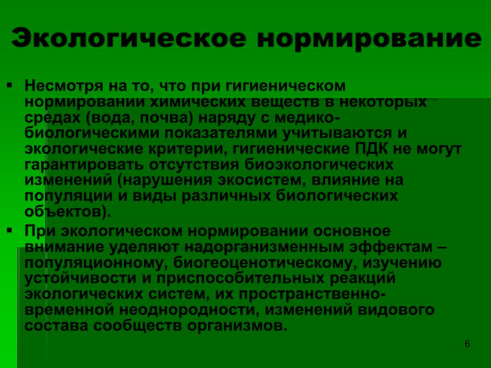 Экологическое нормирование (продолжение)