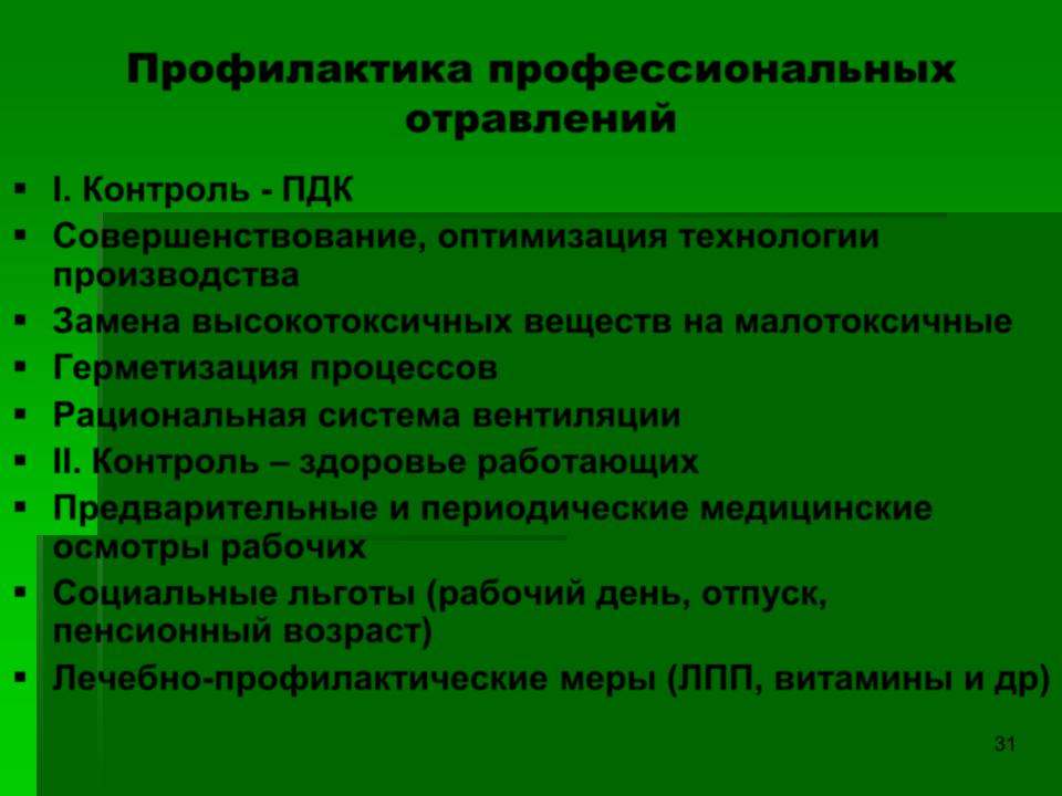 Профилактика профессиональных отравлений