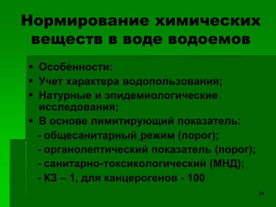 Нормирование химических веществ в воде водоемов