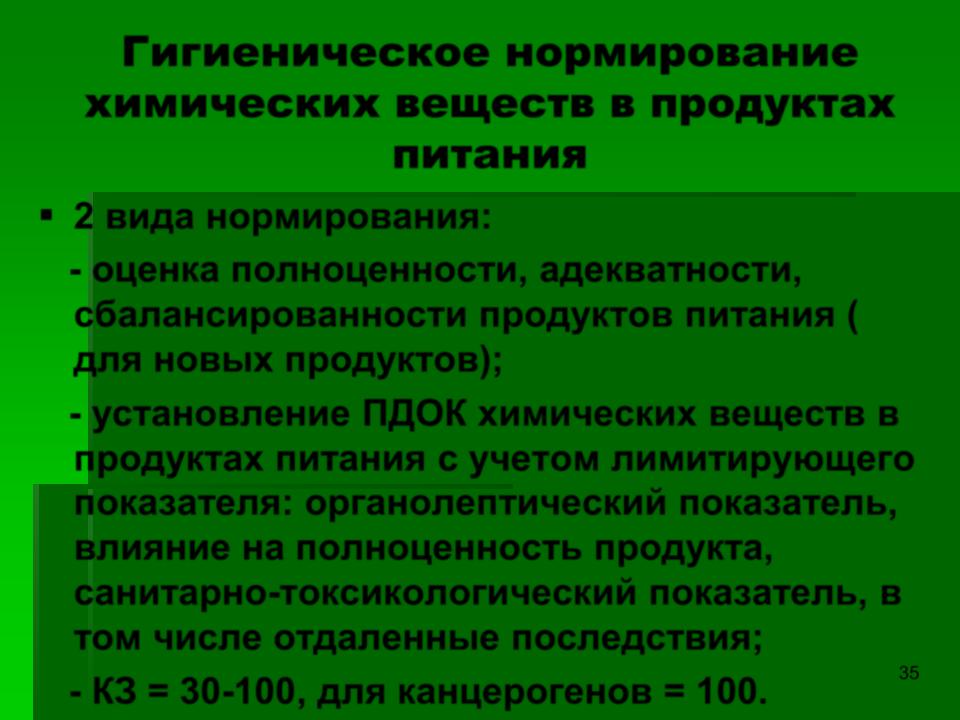 Гигиеническое нормирование химических веществ в продуктах питания
