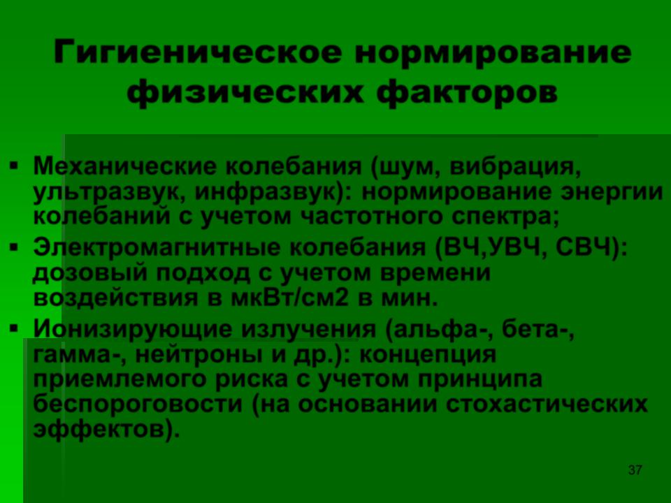 Гигиеническое нормирование физических факторов