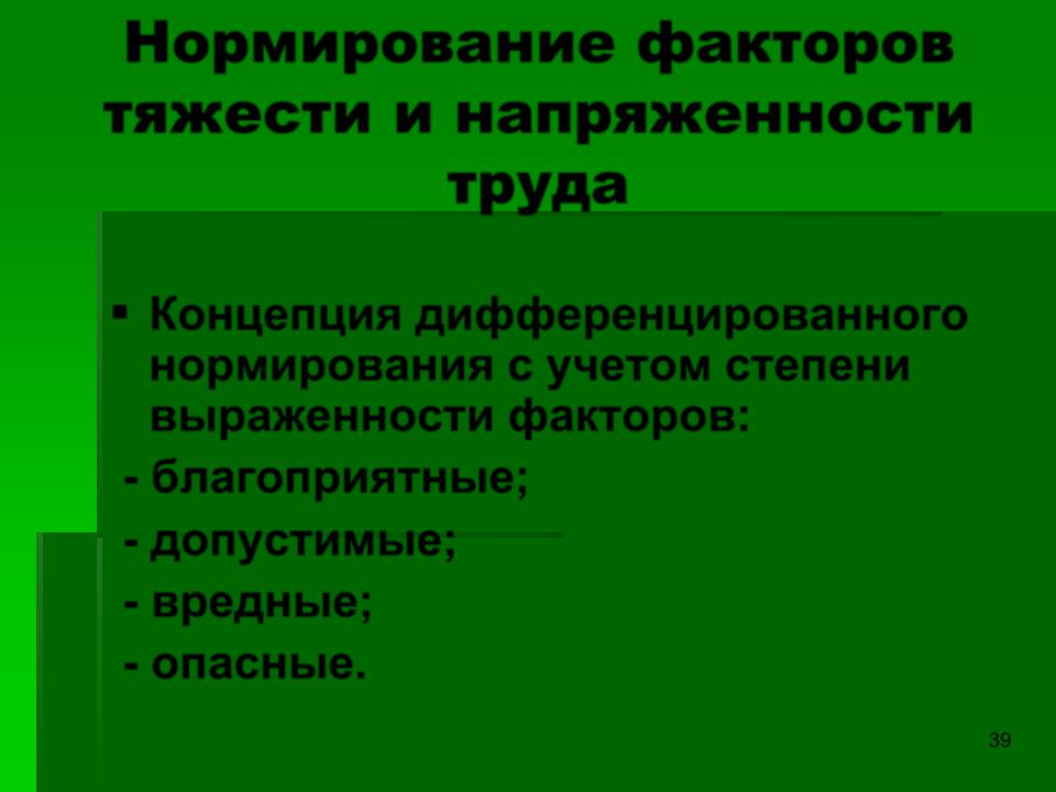 ▪Концепция дифференцированного нормирования с учетом степени выраженности факторов: