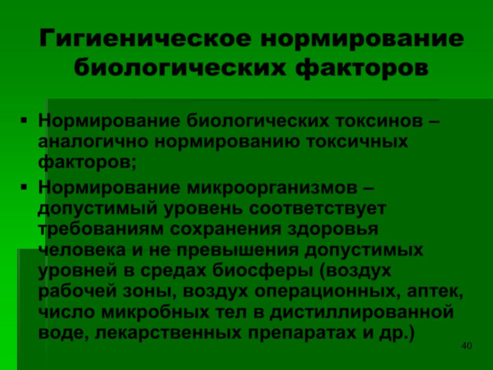 Гигиеническое нормирование биологических факторов