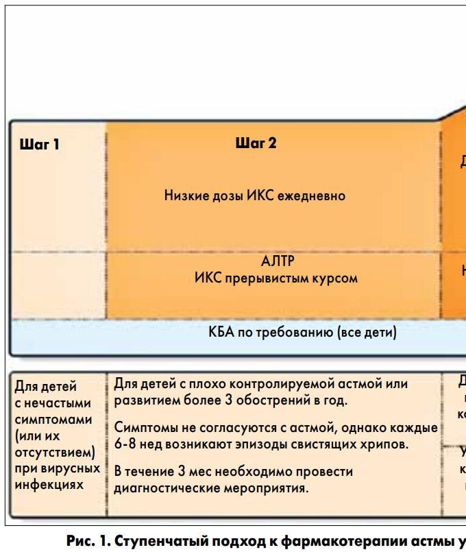 в некоторых странах на выбор варианта терапии может влиять ее стоимость. Схема ступенчатой терапии БА для детей младше 5 лет изображена на рисунке 1.