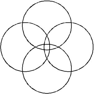 Согласно этой классификации части (участки, те рритории) геосферы, или туристско-рекреационные объекты одного определенного генетического происхождения, могут соседствовать друг с другом, фо рмируя так называемые весьма обширные переходные зоны (и краевые зоны), а на самом деле природные территориальные комплексы с тесным взаим одействием нескольких основных компон ент геосферы. На рис. 2.3 это иллю стрируется общими зонами (полями) пере крывающихся колец, на которых совмещенные площади – это территории, обладающие ресурсами, относящимися к двум, трем и четырем генетически м группам в данной классификации.