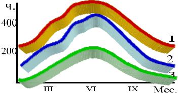 Рис. 2.5. Годовой ход продолжительности солнечного сияния: