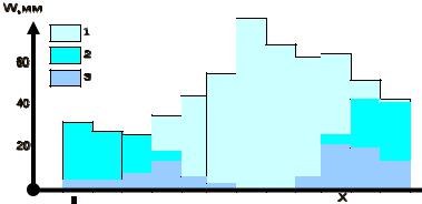 Рис. 2.7. Среднее количество осадков, мм, различного фазового соста-