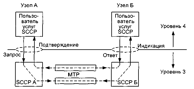 Рис. 10.5. Примитивы SCCP/пользовательские подсистемы