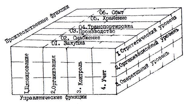 Взаимосвязь функций и уровней управления для удобства можно представить в виде кодов. Например, код 1.01.3 означает планирование закупок на оперативном (срочном) уровне; код 1.03.1 - планирование производства на стратегическом уровне; код 3.04.2 - контроль транспортировки грузов на организационном уровне.