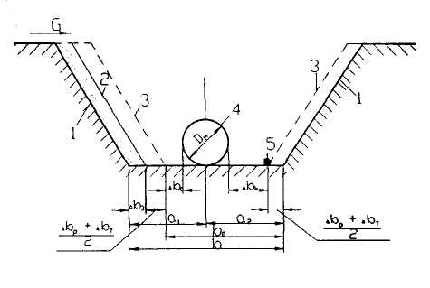 Рис. 15.1. Схема определения ширины траншеи по дну: