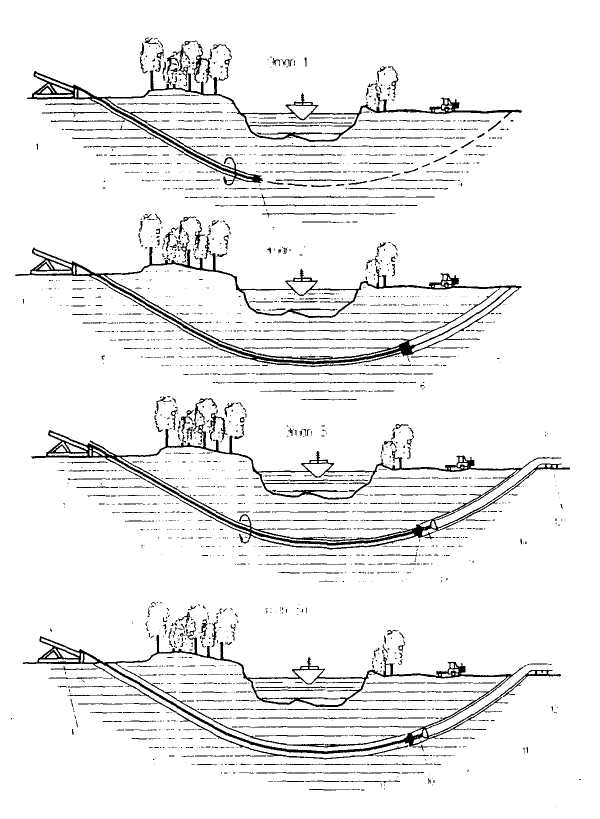 Рис. 15.4. Сооружение подводных переходов методом наклонно-направленного бурения