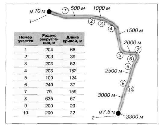 Микротоннели в настоящее время обычно устраиваются способом продавливания или горной проходкой. Точность проходки тоннеля осуществляется компьютерным комплексом управления с применением системы лазерного ведения щита. Прокладка микротоннеля может осуществляться по сложному извилистому пути для обеспечения оптимального направления и выхода в необходимые по проекту точки. На рис 15.6 показана схема прокладки тоннеля через 10 участков подземной трассы.