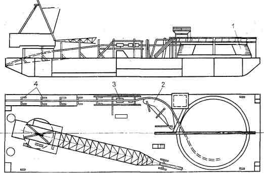 Рис. 15.19. Конструкция трубоукладочной баржи с вертикально расположенным барабанном