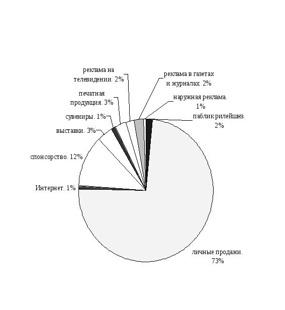 Наибольшая доля расходов ОАО «САЗ» в структуре маркетинговых коммуникаций приходится на личные продажи 73 %. Доля расходов на проведение выставок составляет 3 %, на рекламу в целом – 5 %, на спонсорство - 12 %, на Интернет всего - 1 %.