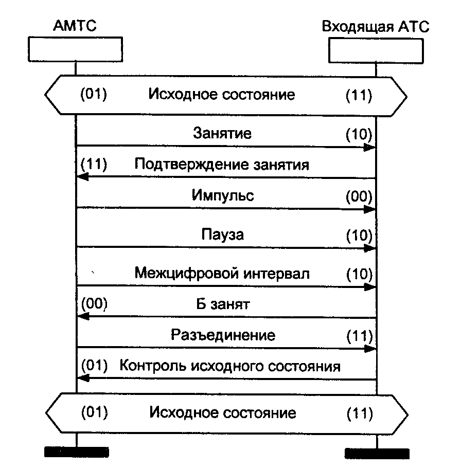Рис. 3.12. Сценарии обмена сигналами (междугородный вызов)