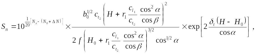 Nx - показание аттенюатора, при котором оценивают предельную чувствительность дефектоскопа Sn или при котором амплитуда эхо-сигнала от исследуемого дефекта достигает уровня, при котором оценивают предельную чувствительность, дБ;