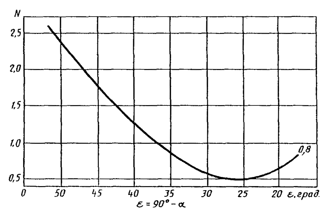 При измерении по стандартному образцу СО-2 установлено, что a = 50°. SKH-диаграмма, рассчитанная для изложенных условии и b = 3 мм, H0 = 44 мм по формуле, приведенной выше, показана на чертеже.