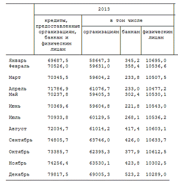 Данные об объемах кредитов, депозитов и прочих
