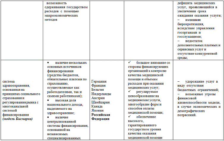Рассмотренные модели здравоохранения систематизированы нами в таблицу (таблица 1).