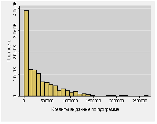 Гистограмма выданных всеми участвовавшими КО льготных ипотечных кредитов