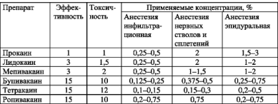 Основные препараты для местной анестезии и их свойства приведены в табл. 1.