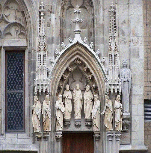 Итак, в архитектуре готический стиль получил особенно значительное развитие в области храмового зодчества. Большие кафедральные соборы, а также сооружения светского характера, возведённые в данном стиле, надолго определили облик городов на территории значительной части Европы. Большая часть элементов готики подчёркивала вертикаль, но устремлённость ввысь - лишь одна из частных характеристик готики в архитектуре. Гораздо более существенной представляется другая особенность готики - уменьшение роли стен, ранее подчёркнуто массивных, и доминирование каркаса в архитектонике. Важно также отметить, что развитие готической архитектуры было теснейшим образом связано с развитием скульптуры, кроме того, оно способствовало дальнейшему совершенствованию особой разновидности изобразительного искусства - изготовления витражей.