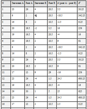 коэффициента ранговой корреляции Ч.Э.Спирмена, позволяющий выявить