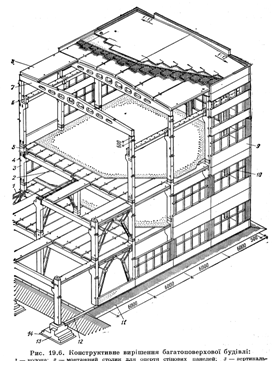 По материалу основных несущих конструкций здания можно разделить: с железобетонным каркасом (сборным, сборно-монолитным и монолитным); со стальным каркасом; с кирпичными стенами и покрытием по железобетонным, металлическим или деревянным конструкциям.