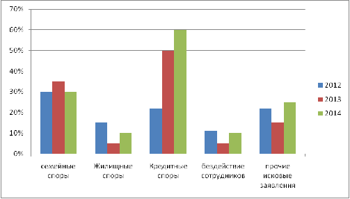 Для рассмотрения решений гражданских дел в судебной практике было отобрано 12 исковых жалоб, рассмотренных в разных судебных органах общей юрисдикции (виды дел и компетенцию представим в таблице 1).