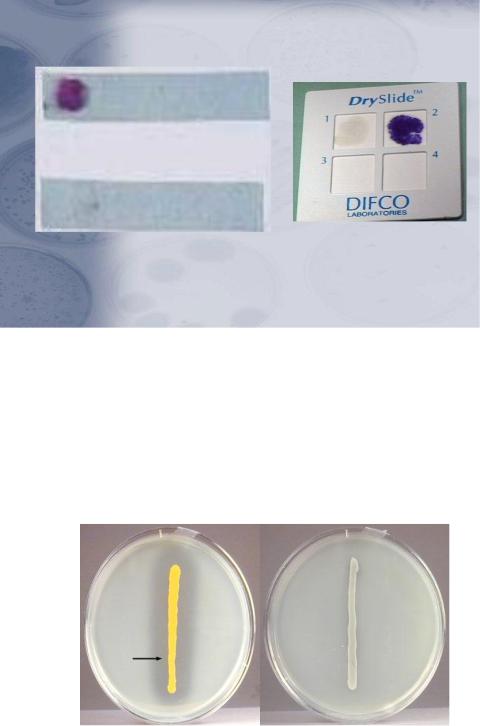 Рисунок 14 – Тест на оксидазу с использованием индикаторных полосок (а) и |