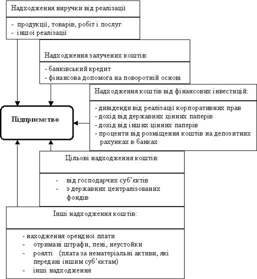 Рис. 1.2 Структура вхідних грошових потоків на підприємстві