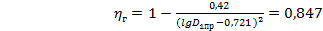 Коэффициент отношения относительных скоростей на входе и выходе из рабочего колеса Кw=1,1