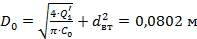 потока при выходе из колеса без учета стеснения сечения (принимая K0= 0.8)