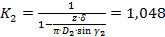 Коэффициент стеснения сечения лопатками на выходе колес (в первом приближении) К2=1,10