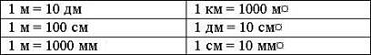 К концу третьего года обучения учащиеся познакомятся со всеми единицами длины, или линейными мерами, и с их соотношениями. Эталоны линейных мер 1 мм, 1 см, 1 дм, 1 м и таблица их соотношений должны постоянно быть в классе.