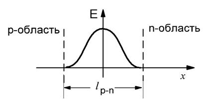 поля Е максимальна на границе р-и n-областей, где происходит скачкообразное
