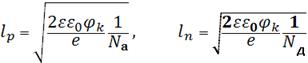 обедненные свободными зарядами, неравны по размерам (lp<lnили lp>ln)