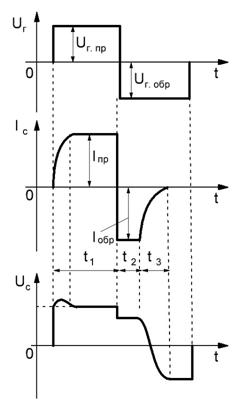 отпирании, переключении и запирании p-n перехода. Uг- импульсное напряжение,