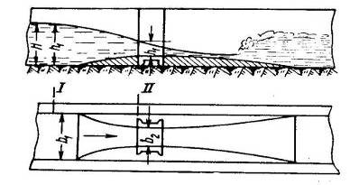 В отдельных случаях для измерения расхода открытых потоков применяется (рисунок 1.3), который по принципу действия подобен соплу или трубе Вентури с той лишь разницей, что сечение потока в измерительной части канала изменяется с изменением расхода, в то время как сечение потока в закрытом трубопроводе остается постоянным независимо от расхода[6].