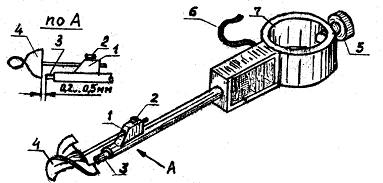 электрода 3, регулировочного винта 2, муфты 7 для крепления на штанге с помощью