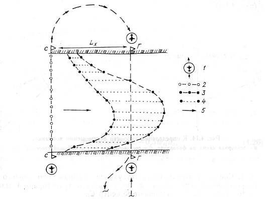 аэрофотосъемок, 4 - траектории поплавков, 5 - направление течения